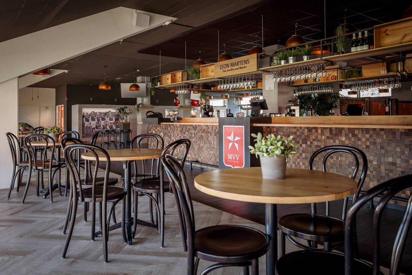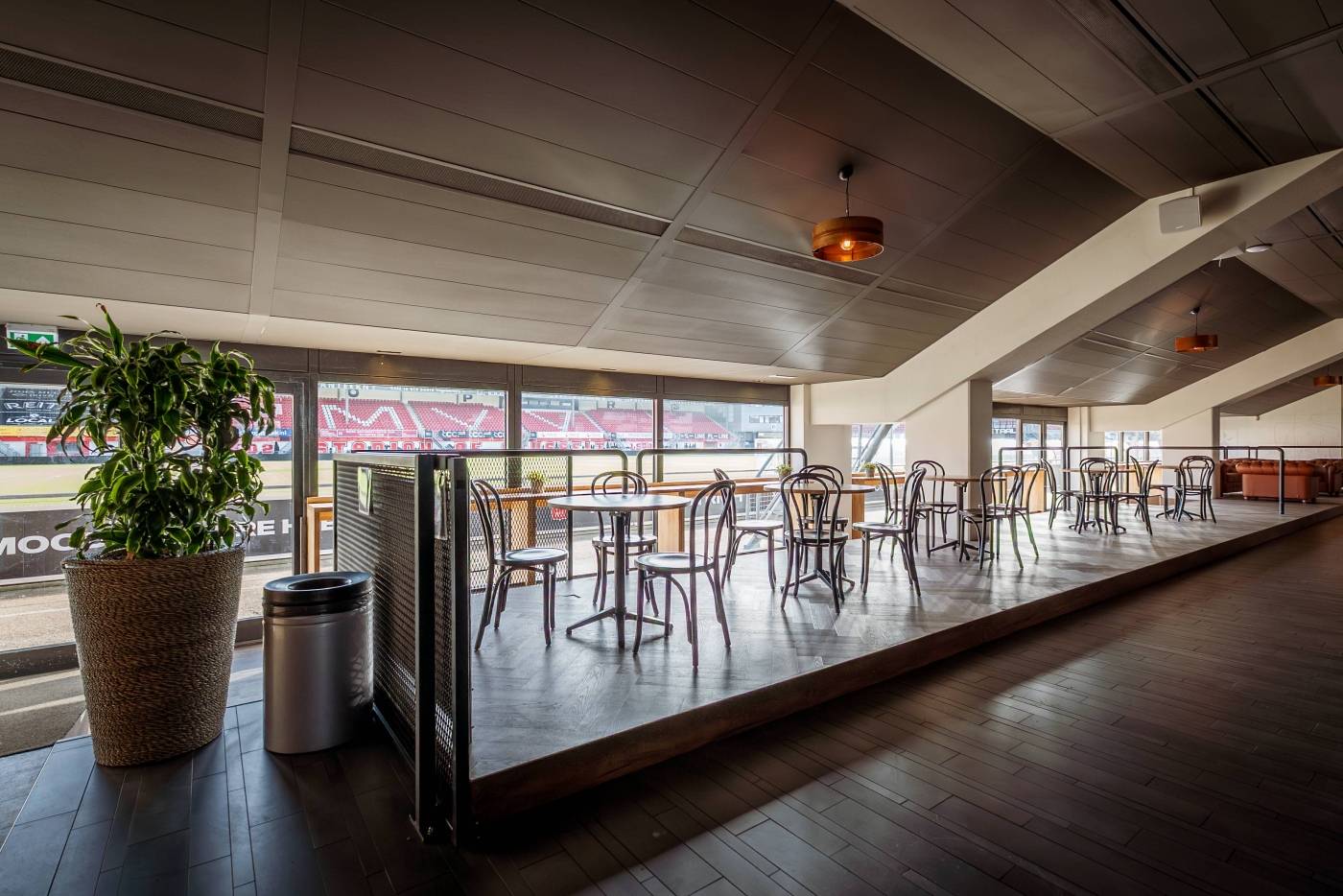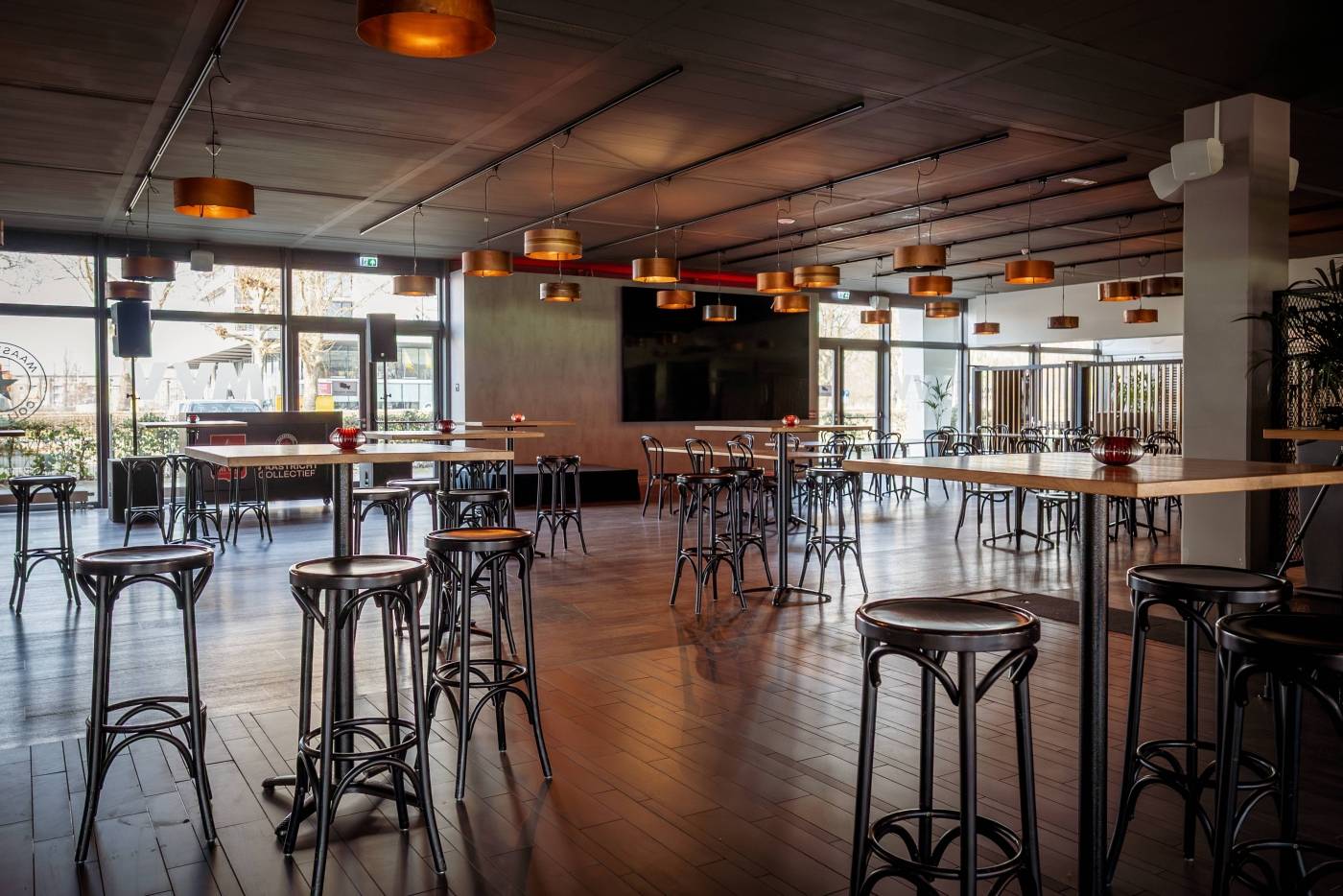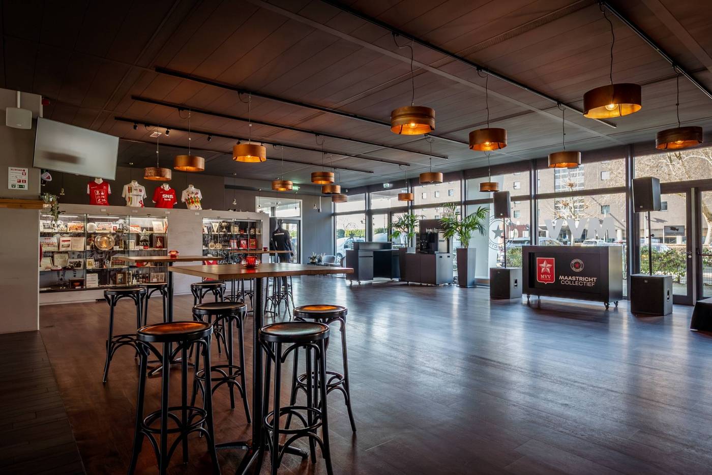 De sfeervolle Maastricht Collectief Business Lounge bevindt zich op de begane grond, direct aan het veld en is de grootste ruimte binnen Stadion De Geusselt. Deze veelzijdige lounge is perfect voor zowel zakelijke als feestelijke bijeenkomsten en biedt plaats aan maximaal 800 gasten. Dankzij flexibele indelingen met dividers kunnen we de ruimte eenvoudig opdelen, waardoor ook kleinschalige evenementen optimaal tot hun recht komen. De lounge beschikt over een eigen 360°-bar, een keuken en alle moderne audiovisuele faciliteiten, ideaal voor zakelijke bijeenkomsten én feestelijke evenementen.
