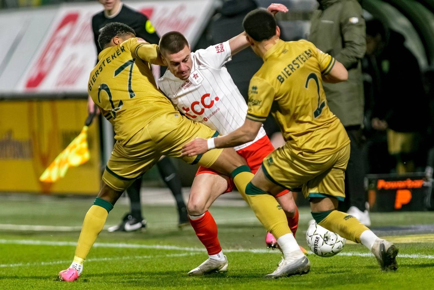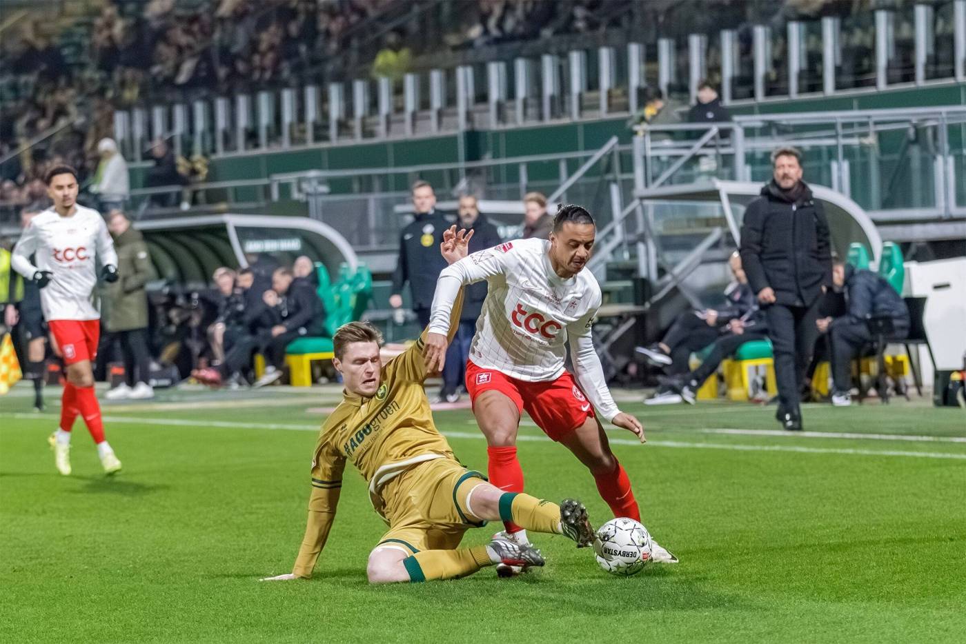 MVV Maastricht heeft vrijdagavond een 3-0 nederlaag geleden op bezoek bij ADO Den Haag. In het WerkTalent Stadion hielden we in de eerste helft goed stand en gingen beide ploegen met een 0-0 ruststand de kleedkamers in.